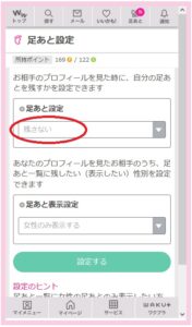 MYページ⇒各種設定⇒プライバシー設定⇒足あと設定で残さないにしておく